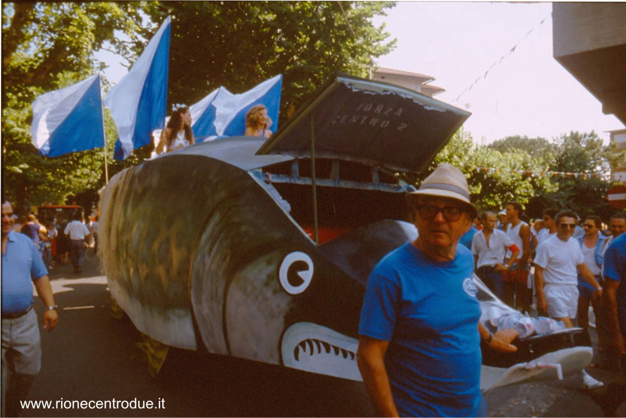 Il Rione Centro Due, caratterizzato dal simbolo del pesce Luccio, nasce ufficialmente nel 1984 in seguito alla brillante creazione della rievocazione storica della gara del Palio delle Barche, che ogni anno si corre l’ultima domenica di Luglio. Contraddistinto dai colori Bianco e Azzurro, il Rione si estende nella parte nuova del paese, dei nuovi insediamenti urbani del dopoguerra, a differenza degli altri rioni che nascono attorno ad agglomerati precedenti. Il Rione è stato sin dall’inizio la terra dei sogni per le giovani famiglie che tra gli anni ’70 e i primi anni ’80 decisero di insediarsi in via del Giuoco, via Primo Maggio, alle case popolari o il Bronx, come venne da subito ribattezzato. Uomini e donne che decidevano di costruire il loro futuro e la loro fortuna nella parte più nuova del paese, lontana dalle zone rurali, ma anche dal vecchio centro storico e dal Castello. Artigiani, operai, insegnanti, artisti ed avventurieri, il Rione accolse da subito la meglio gioventù di Passignanesi che negli anni a venire si distinse con merito in tutte le arti nobilitando la città di Passignano. Forte del suo essere sempre nuovo, giovane e vitale, il carattere temerario ed ambizioso che storicamente contraddistingue la gente di questa terra, distingue il Centro Due da qualsiasi altro Rione per stile e carattere. Il nostro simbolo d’acqua, il Luccio, un pesce vorace e predatore, che rappresenta il nostro istinto e la nostra natura sempre vittoriosa e alla ricerca di nuovi successi. Il nostro simbolo di terra, la Rondolina, un’antica torre di avvistamento, poi usata come granaio e luogo di incontro mondano nell’ultimo secolo, dove si andava a ballare, il simbolo della difesa, del lavoro ma anche della voglia di aggregazione e della festa. Infine le due Rondini che volano nella stessa direzione, simbolo della "Famiglia" ed esempio di forza ed armonia. “La forza dell’acqua, i colori del cielo”, in questo si può perfettamente riassumere l’entusiasmo che si respira nelle vie della nostra terra. Orgoglio di appartenenza, coraggio di affrontare nuove sfide per tante donne e uomini che sono sempre all’opera per il Luccio, un’onda colorata che l’ultima domenica di Luglio si riversa nelle strade del paese per spingere l’imbarcazione biancazzurra sempre verso la Vittoria. Il brivido che ti corre lungo la schiena mentre aspetti la partenza, quel nodo alla gola mentre vedi le barche arrivare, l’urlo dei Lucci lungo le strade, tutto questo è Palio. L'amore per il Rione Centro Due, Passignano e il Palio delle Barche ci accompagnano in ogni passo perché essere Rondolini è prima di tutto uno stile di vita.